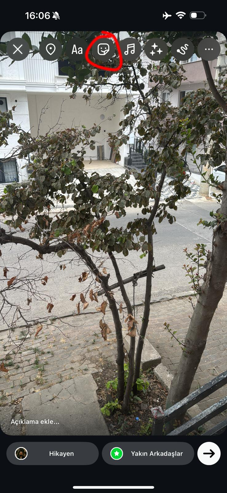 2. Instagram’a girin ve hikaye paylaşım ekranına gelin.